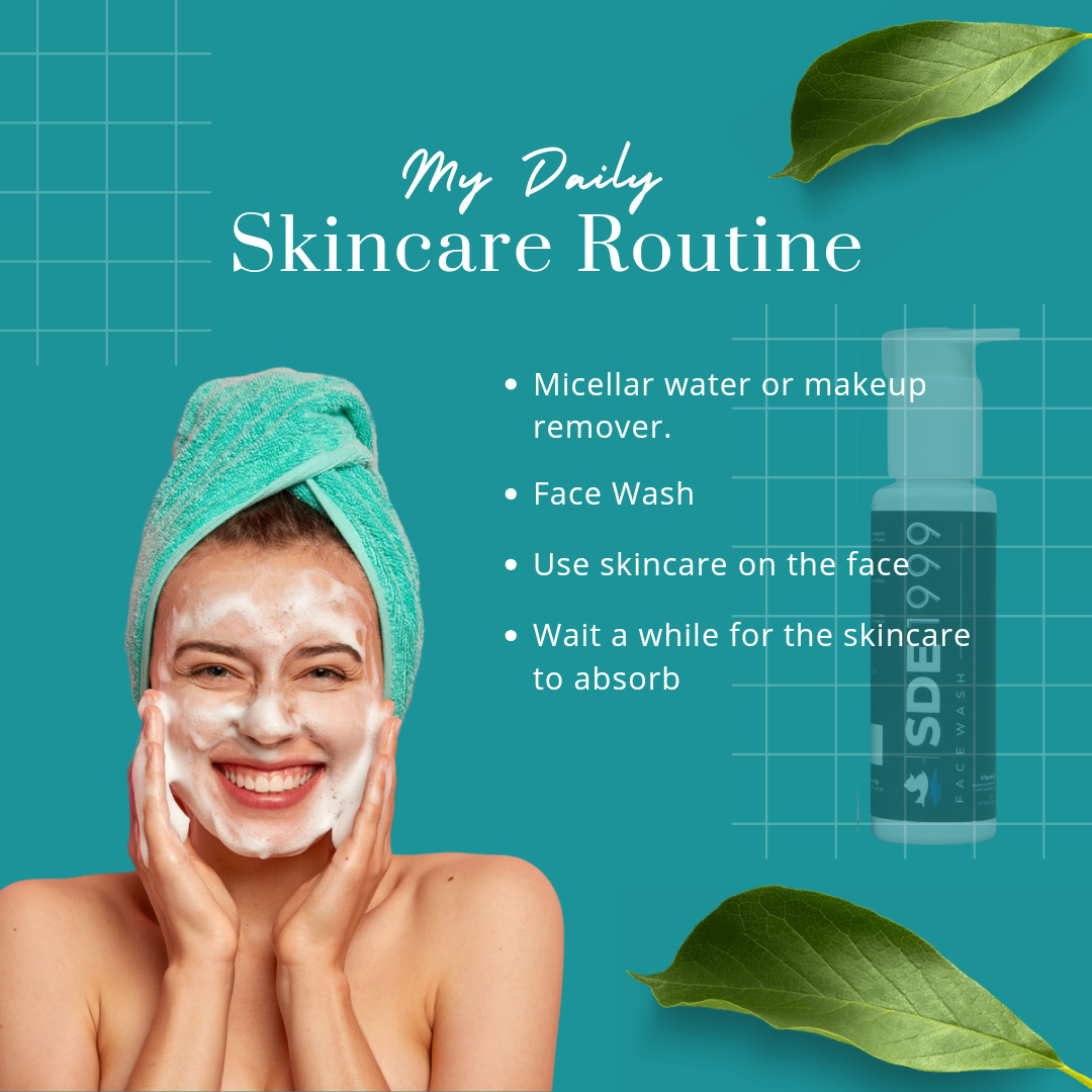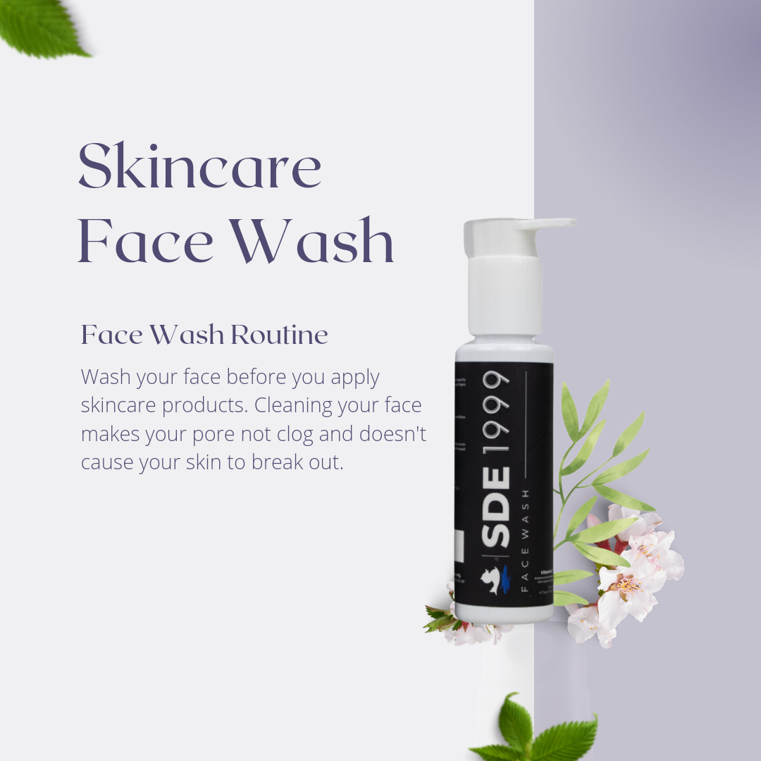 - Dispense a small amount of SDE 1999’s Gentle Face Wash onto your palm.